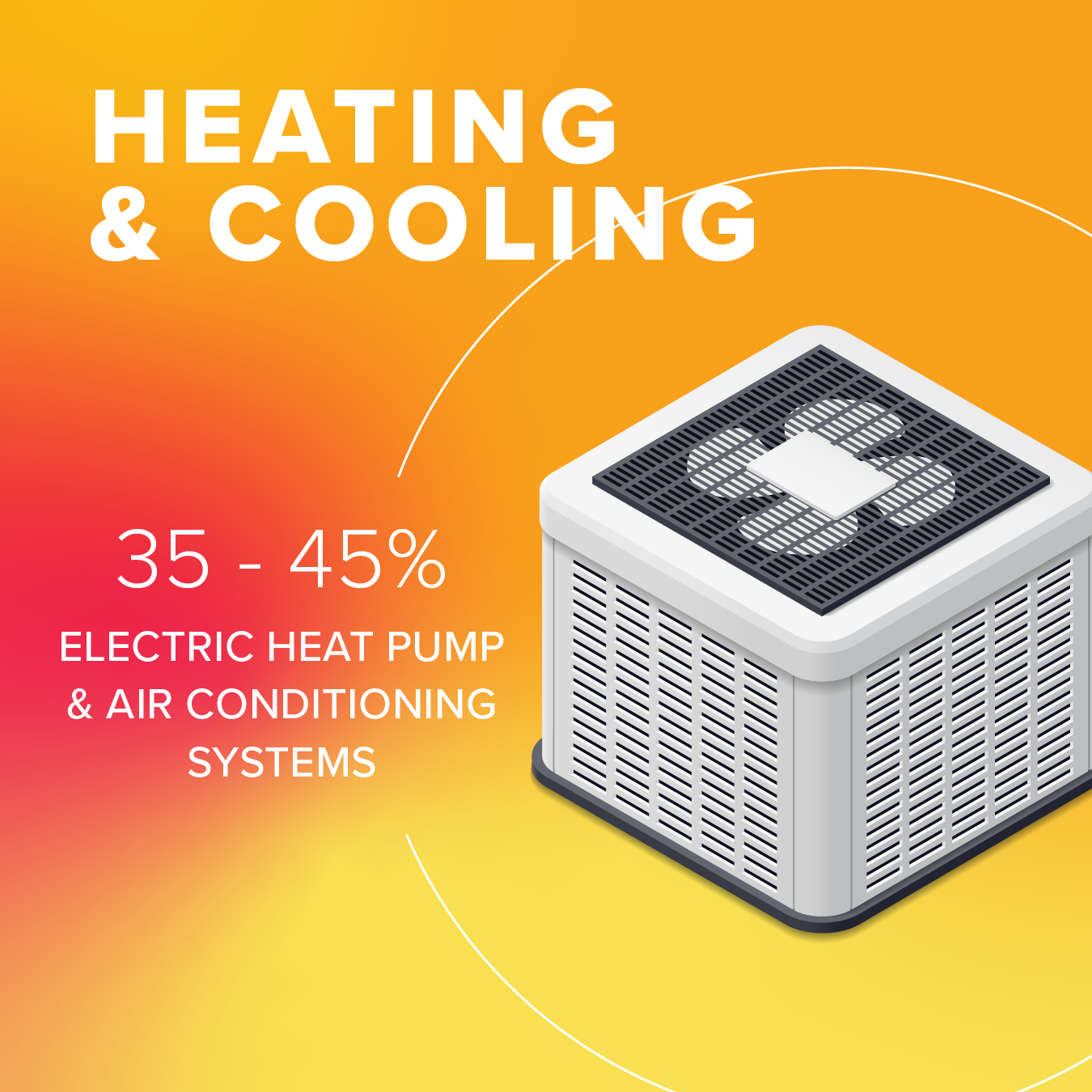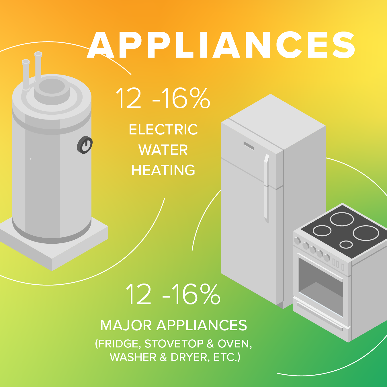 The graphics below show a typical energy breakdown for a 900–1,100 sq ft all-electric apartment. Use them as a guide to see what’s using the most—and where small adjustments might help lower your monthly costs.